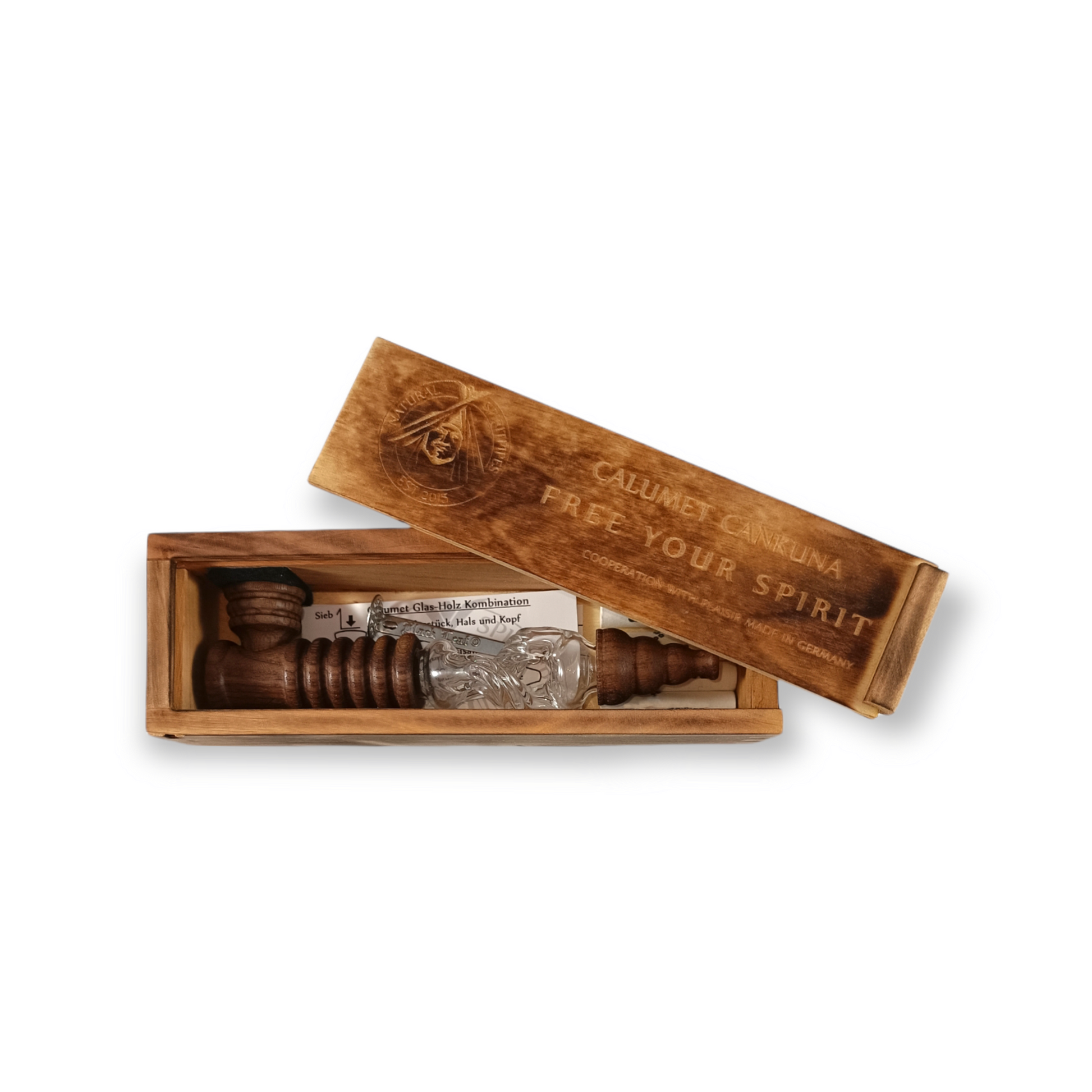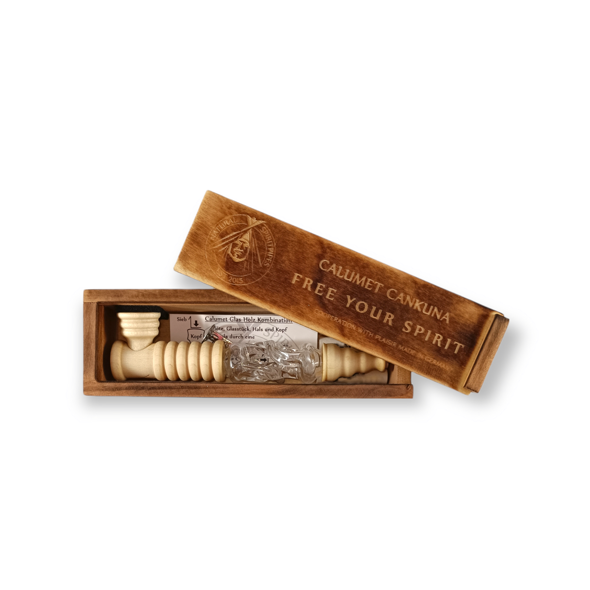 The Calumet Cankuna is an elegant design accessory created in collaboration with the renowned German glass manufacturer PLAISIR. Its distinctive appearance and carefully balanced proportions make it a true collectorâs piece that stands out through craftsmanship and material harmony.