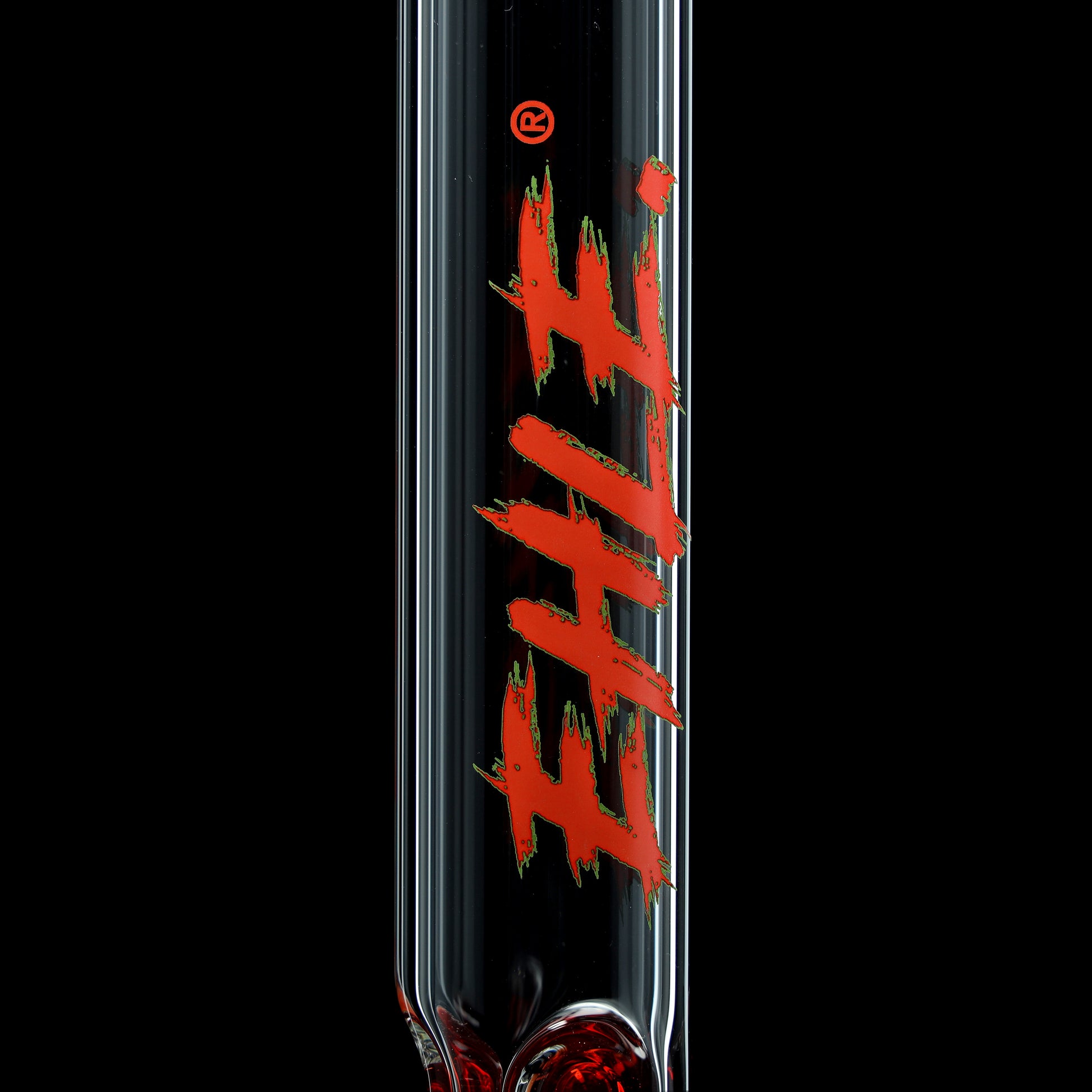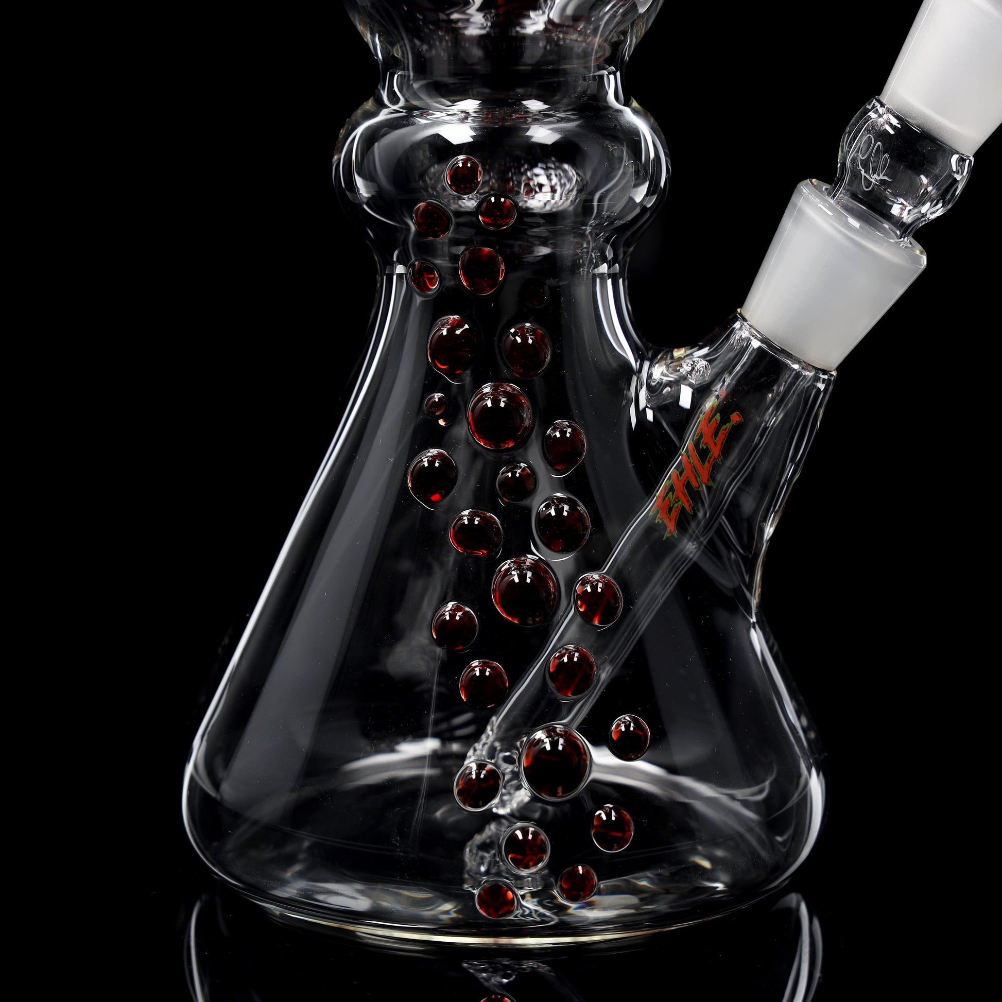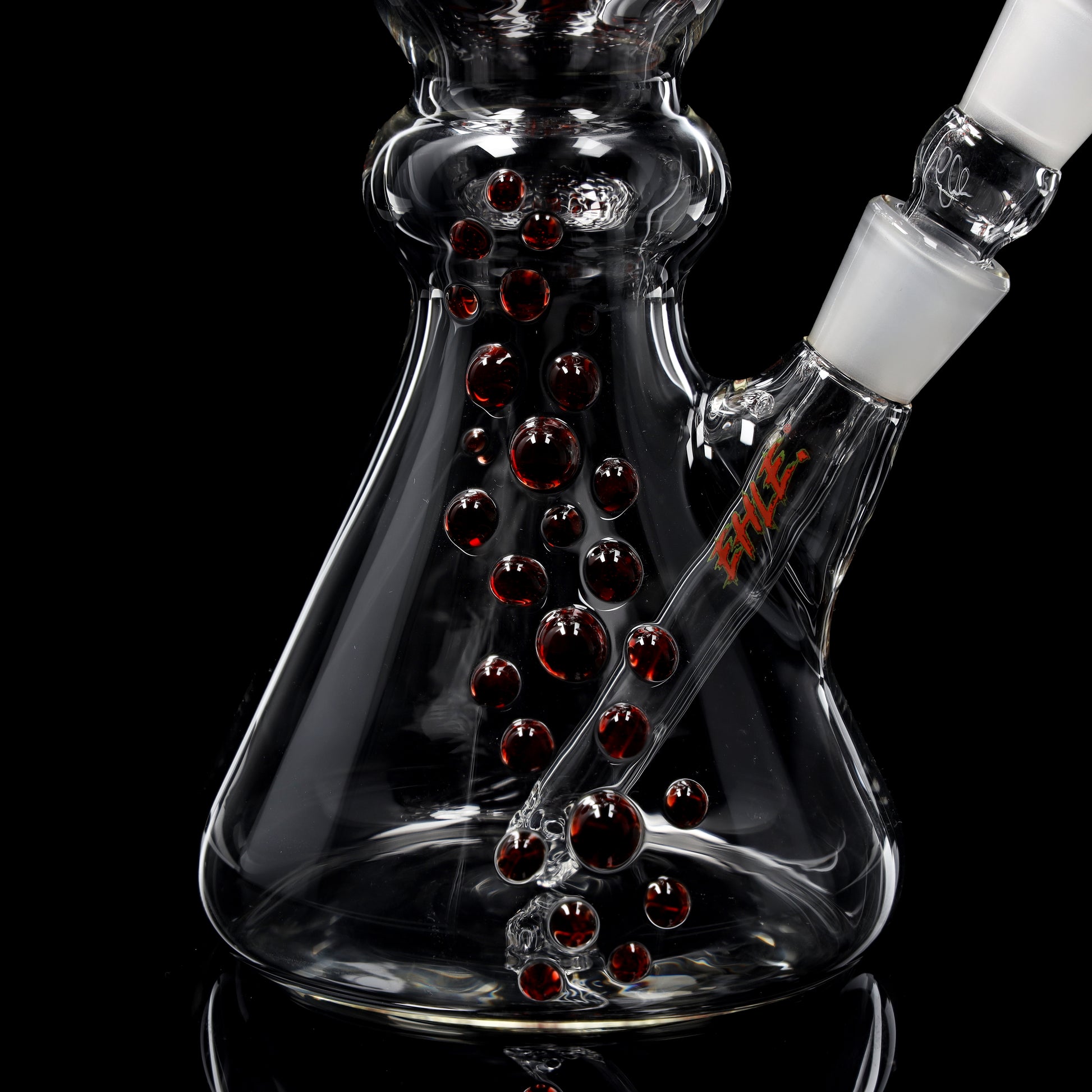 The beaker bong features striking red ice pinches and red glass dots, perfectly complementing the iconic Implosion design. Equipped with a diffusor and a matching bowl with colored dots, this setup delivers smooth, cooled hits with a strong visual statement.